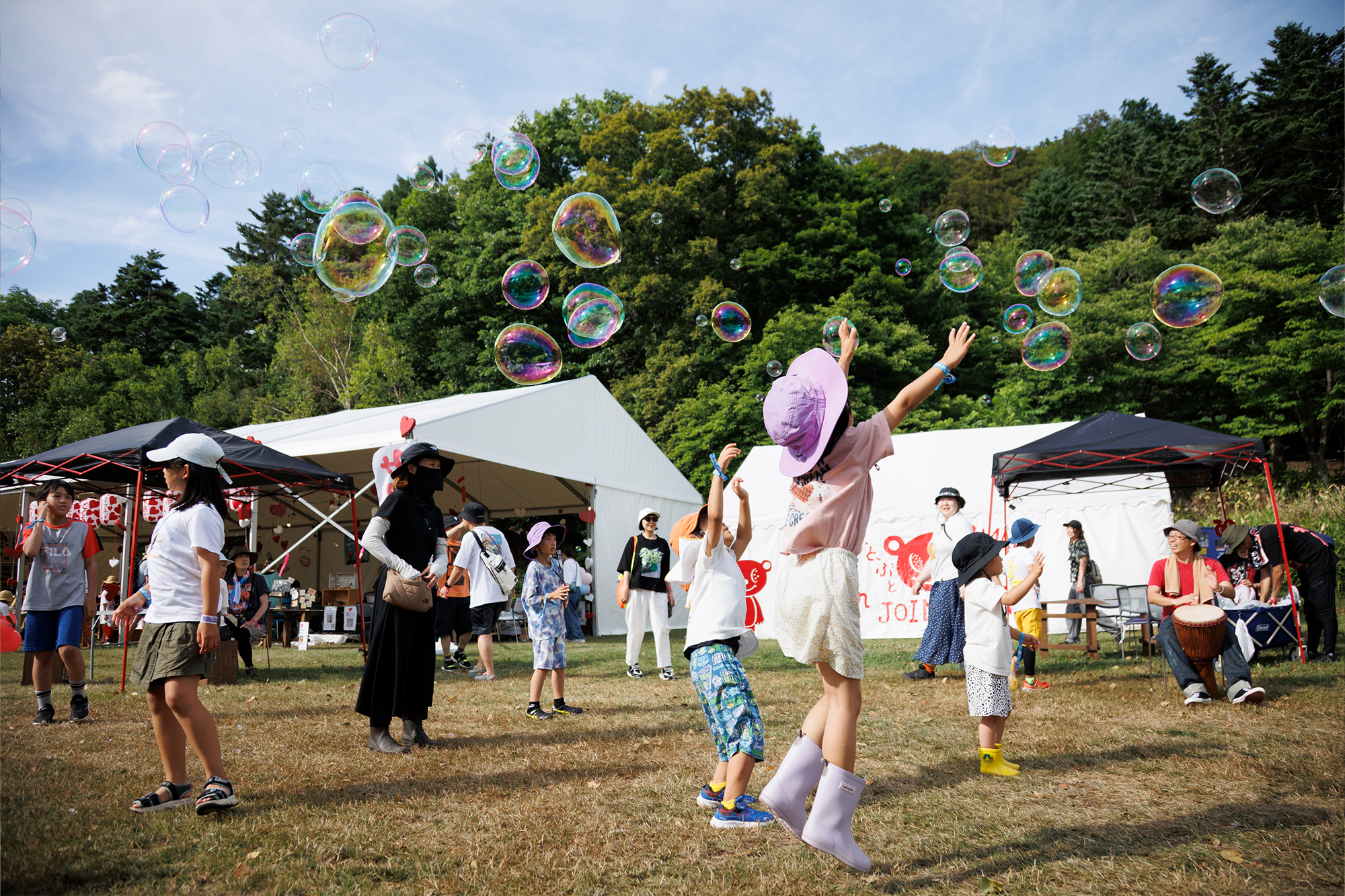 会場には常設トイレが多数あり快適な環境です。場内は舗装された通路が多いためベビーカーでの来場も可能。お子様連れも安心です。